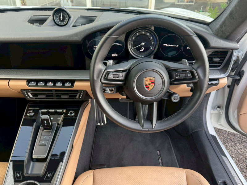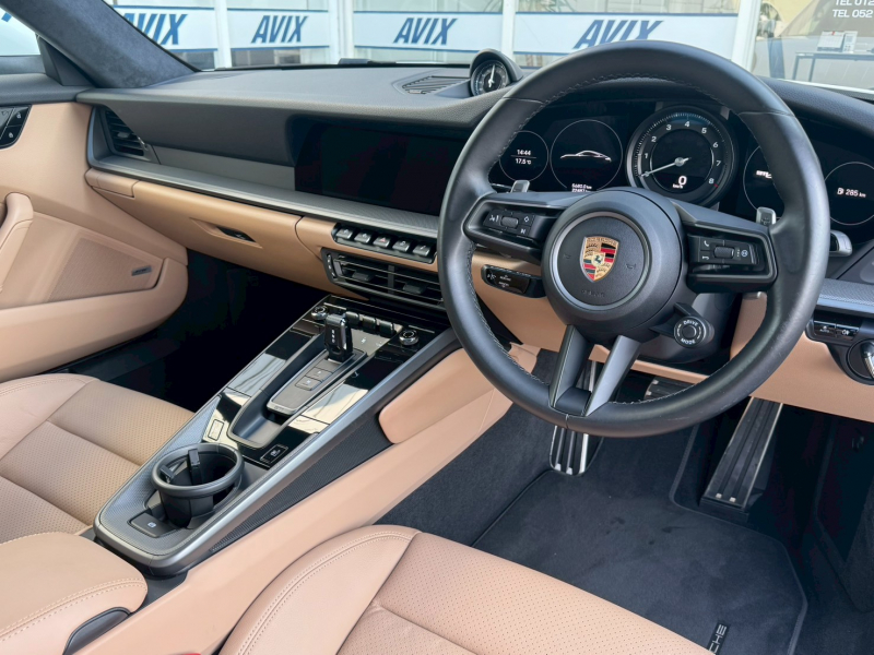 ホワイトのボディにベージュレザーインテリアを組み合わせた、911らしい品のある佇まいが印象的な一台です。