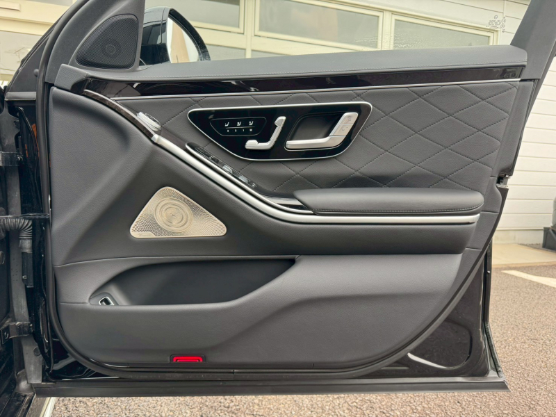 メルセデスベンツ Sクラス S500 4MATIC ロング (ISG搭載モデル) AMGライン リアコンフォートPKG 純正リアエンター ショーファー ARヘッドアップ&3Dコックピット 禁煙 パノラマSR 黒革 ACC LKA HUD Burmester3D MBUXナビTV 360° ヒーター&ベンチレーション CarPlay AMG20AW