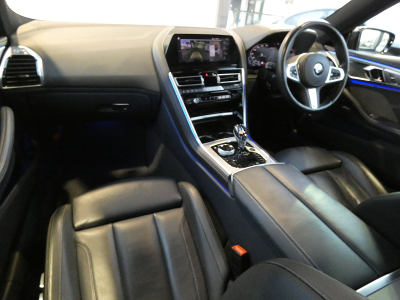 BMW 8シリーズ M850i xDrive グランクーペ V8ツインターボ 青/黒革 ドライビングアシストプロ ACC LCA 純正HDDナビ地デジ AppleCarPlay TOP&3Dビュー HUD harman&kardon シートヒーター ベンチレーション 4ゾーンAC BMWレーザーライト ソフトクローズドア 専用20AW 禁煙 右H 下取車 正規D車