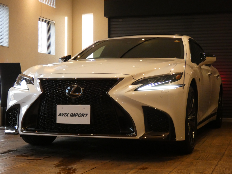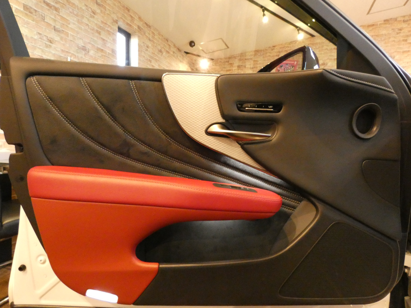 2017y レクサス LS500 Fスポーツ 2WD 純正グラファイトブラックガラスフレーク/セミアニリンフレアレッドレザー 右H 事故歴無 試乗可能 全国販売・全国納車可能 納車整備(消耗品含) 3ヶ月/3,000km保証付販売