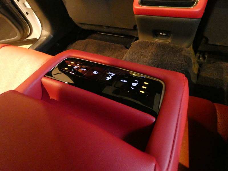 ・室内装備 ウルトラスエードルーフ/サンバイザー 電動サンシェード リアウィンドウ ”F SPORT”専用アナログクロック(GPS時刻補正機能付) タッチスイッチ式オーバーヘッドランプ ”F SPORT”専用本革/ウルトラスエードスポーツシート(運転席・助手席シートヒーター&ベンチレーション機能 後席左右シートヒーター付) 28way調整式フロントパワーシート(マルチサポートシステム・ポジションメモリー付) フロントヘッドレスト 前後上下電動調整式 後席左右席大型ヘッドレスト マニュアル上下調整式 後席センターアームレスト(カップホルダー・収納ボックス付)