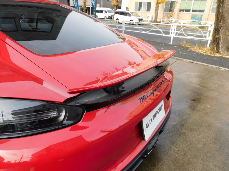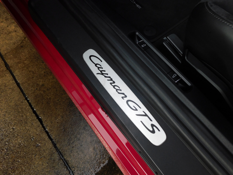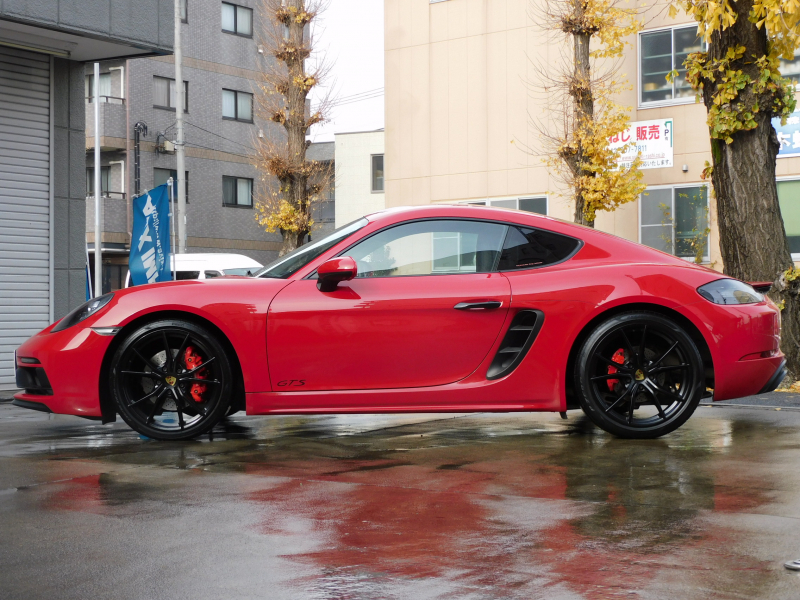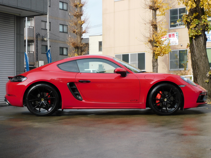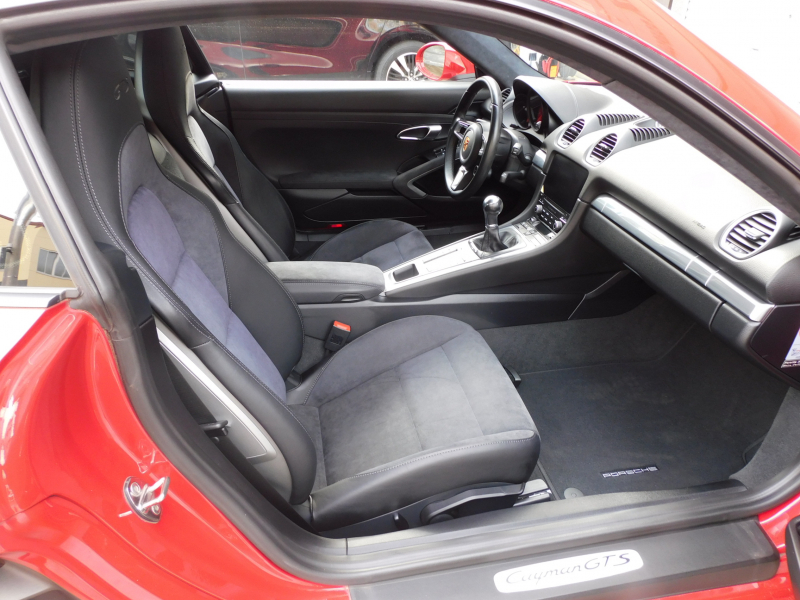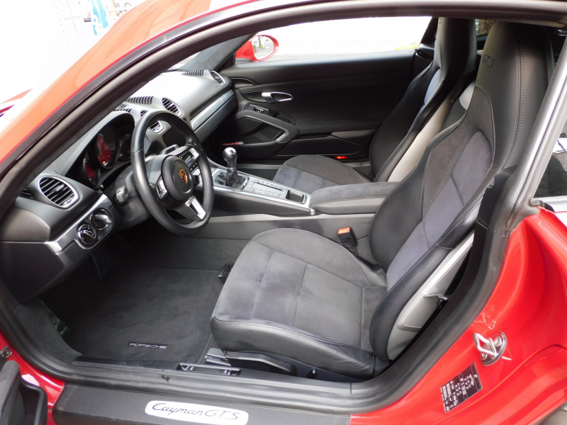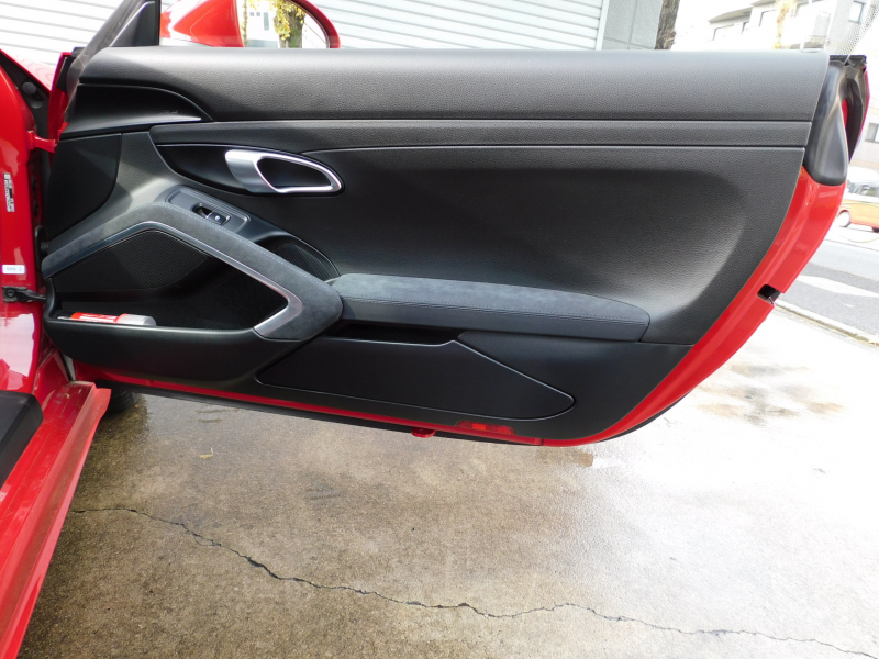 GTS限定生産モデル、左ハンドル&6速MT!! 安心の正規ディーラー車 ワンオーナー!! 取説・記録簿付 事故歴ありません!! 鮮やかな外装色カーマインレッド(スペシャルオーダーカラー)にGTS専用エクステリア&GTS専用のブラックカラー塗装が施された20インチカレラSホイールやレッドペイントブレーキキャリパーが迫力有るエクステリアを演出!! 室内はスポーティーなブラックハーフレザーシート&GTスポーツステアリングの組み合わせにシートヒーター、ガーズレッドカラーメーターパネルが完備!! 高解像度7インチタッチスクリーンを採用したポルシェコミュニケーションマネジメントシステム搭載!! 便利なエントリー&ドライブシステムや電動可倒式ドアミラー、運転操作をサポートするパークアシストシステム(リア)や夜間走行をサポートするバイキセノンヘッドライト(ブラック仕上げ)が装備!! GTSならではのドライビングプレジャーを掻き立てるスポーツクロノパッケージ&スポーツエグゾーストシステムに2.5L 水平対向4気筒ターボエンジン&PASM&PTV、さらには911ターボ同様VTG(可変タービンジオメトリー)が相まってストレスのないドライビングをお愉しみいただけます!! 718ケイマンGTS、左ハンドル&MT搭載車、この機会をお見逃しなく!!