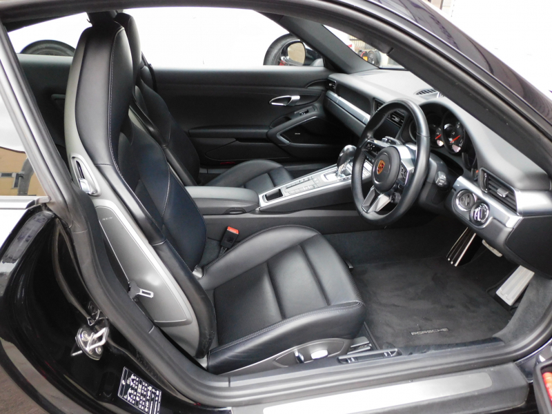 ポルシェ 911(Type991.2) 後期型 右H正規D車 水平対向6気筒ツインターボ 7速PDK スポーツデザインフロントエプロン スポーツクロノPKG 黒革 シートヒーター PCMナビ BOSEサウンド Bカメラ クルコン ブラック仕上げLEDヘッドライト(PDLSプラス付) スポーツテールパイプ PASM 純正20インチAW 禁煙
