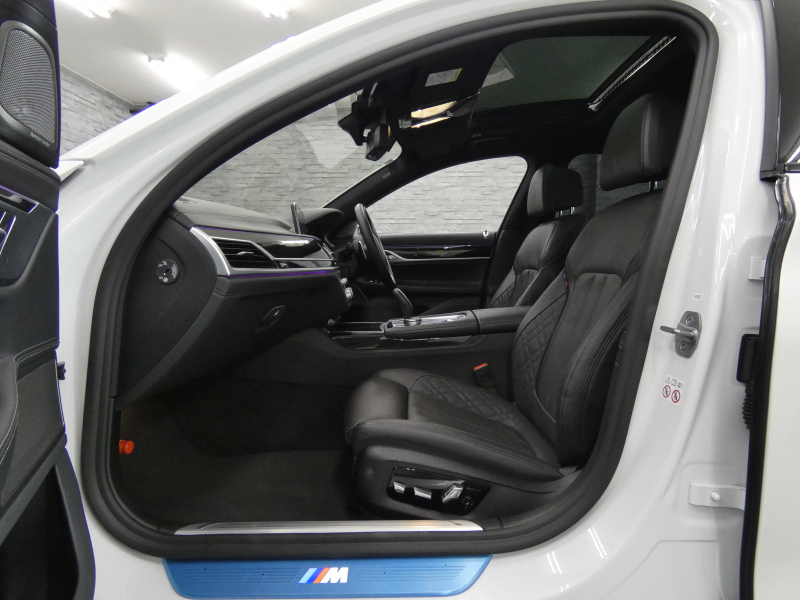 使い勝手の良いxDrive(4WDシステム)搭載!! 取説・記録簿付 事故歴ありません!! 綺麗な外装色ミネラルホワイトにMスポーツ専用エクステリア&専用20インチアルミホイールが迫力有るエクステリアを演出!! 使用感はとても少なく心地良い禁煙の室内は落ち着いたブラックレザースポーツシートにガラスサンルーフ、全席シートヒーター、前席ベンチレーター、4ゾーンエアコンが完備!! 使い勝手の良いジェスチャーコントロール付i-Driveナビ&harman/kardonサウンドシステム、運転操作をサポートするパーキングアシスト&ヘッドアップディスプレイ、ドライビングアシストプロフェッショナルに加えてエグゼクティブドライブプロが装備され、750i Mスポーツならではのドライビングプレジャーを掻き立てるスポーツエキゾーストシステムも装備!! DOHC V型8気筒ツインパワーターボエンジンと電子制御8速スポーツATがストレスの無いドライビングを可能とさせます!! お探しの方は是非お急ぎ下さい!!
