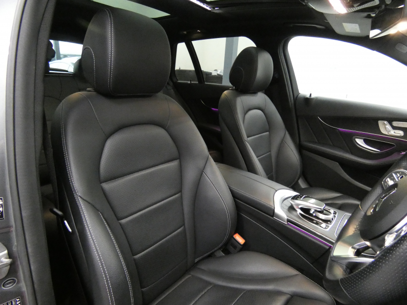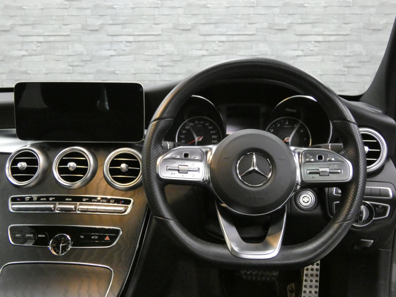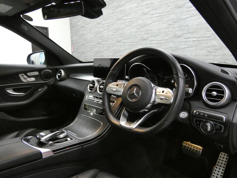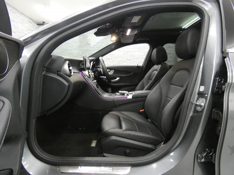 メルセデスベンツ Cクラス C200ステーションワゴンAVG AMGライン 後期(BSG搭載モデル) パノラミックSR 黒革 シートヒーター 純正ナビ 地デジ&CarPlay Bカメラ&PTS レーダーセーフティPKG マルチビームLED 電動テールゲート エアサス 純正18インチAW