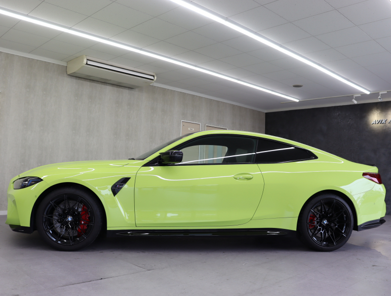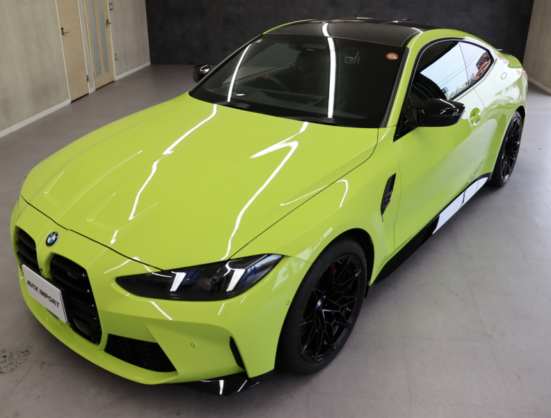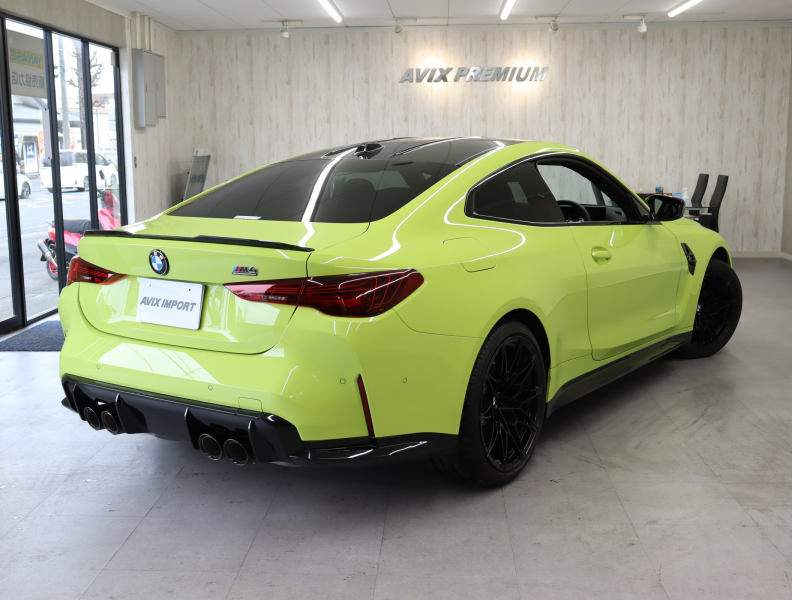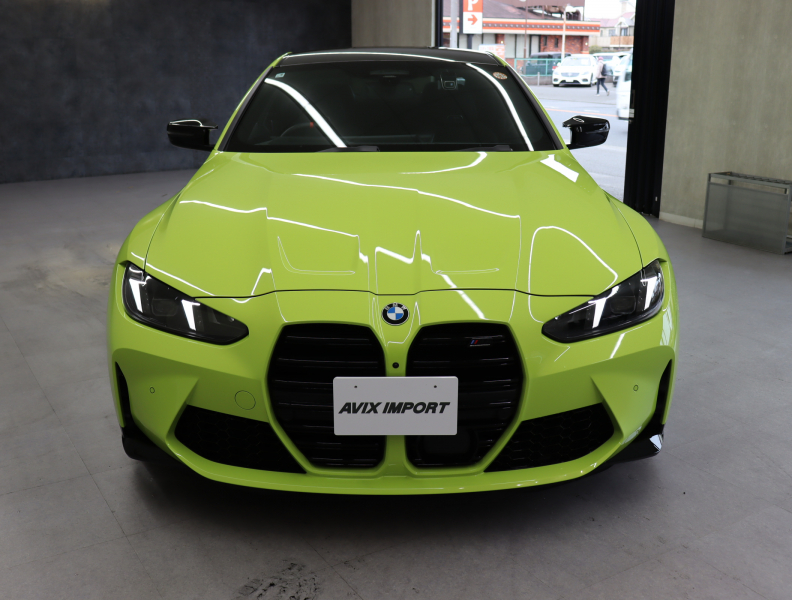2025y BMW M4 Competition M xDrive クーペ 純正サンパウロイエロー/ブラックレザーシート 正規ディーラー車 禁煙1オーナー 新車保証継承 右H 取説・記録簿付 事故歴無 試乗可能 全国販売・全国納車可能 納車整備(消耗品含) 3ヶ月/3,000km保証付販売