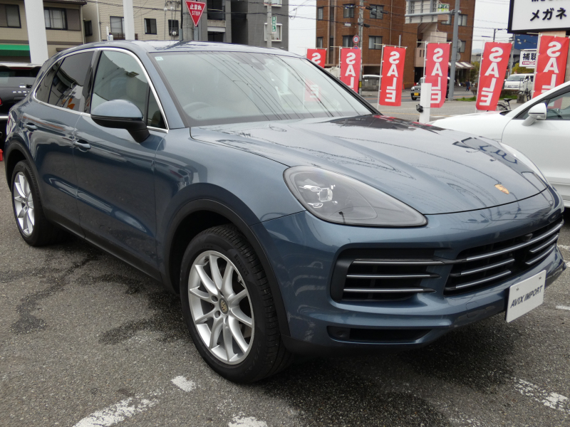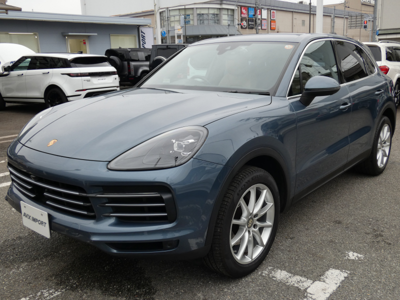 安心の右ハンドル、正規ディーラー車!! 取説・記録簿付 もちろん事故歴ありません!! 希少色ビスケーブルーメタリックにLEDヘッドライト&20インチカイエンデザインホイールが装備され迫力あるエクステリアを演出!! SUV特有の使用感はとても少なく心地良い禁煙の室内はお洒落なブラック/ルクソールベージュレザーインテリア!! 更に高解像度12.3インチタッチスクリーンを採用し、より一層使い勝手の良くなったPCMナビ(ポルシェコミュニケーションマネジメントシステム)を搭載しアップルカープレイ対応!! 便利なエントリー&ドライブシステム、オートマチックテールゲート、運転操作をサポートするサラウンドビュー付パークアシストシステム、ACC(アダプティブクルーズコントロール)装備!! 340馬力を発揮するV6ターボエンジンと8速ATが相まってストレスの無いドライビングを可能とします!! カイエンをお探しの方は是非お急ぎ下さい!!