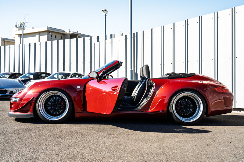ポルシェ 911(Type997) カレラ4 カブリオレ RWB997 レギュラーワイドボディ RWBコラボレーションWORK Meister19AW Fダウンサス リア車高調 黒革 ナビTV ETC FCLリングキセノン LEDドライビングライト&テール パドルシフト