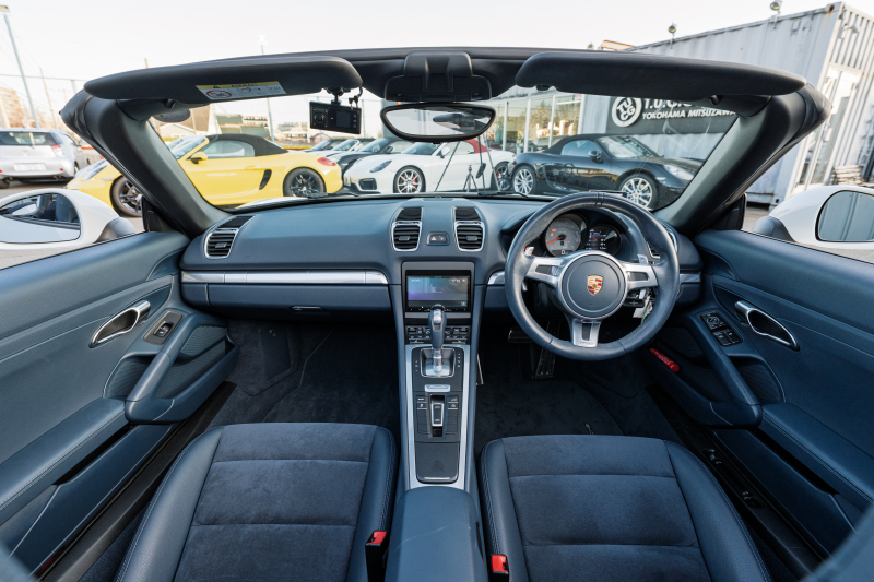 ポルシェ ボクスター(Type981) S ヨッティングブルーハーフレザーシート シートヒーター ブルーソフトトップ カロッツェリアナビ フルセグTV CarPlay Bカメラ PDLS スポーツデザインステアリング 電動Dミラー オートA/C ケイマンS19AW 2年保証