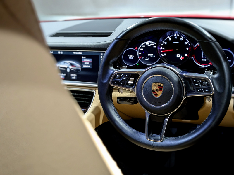 ポルシェ パナメーラ 3.0 V6 ベージュレザーシート シートヒーター エントリードライブ PASM デジタルインナーミラー ブラックペイント19インチAW スポーツデザインミラー