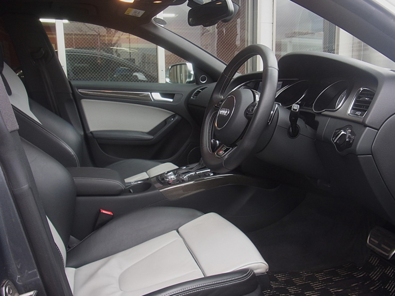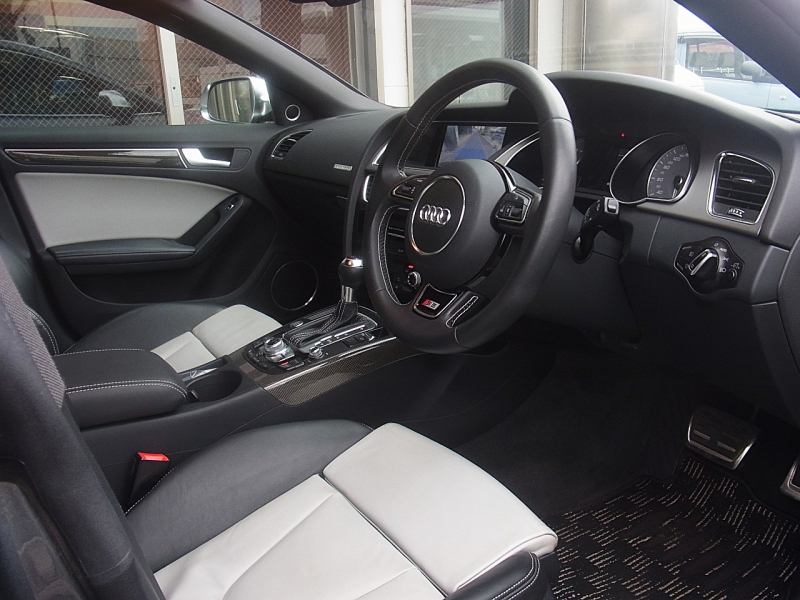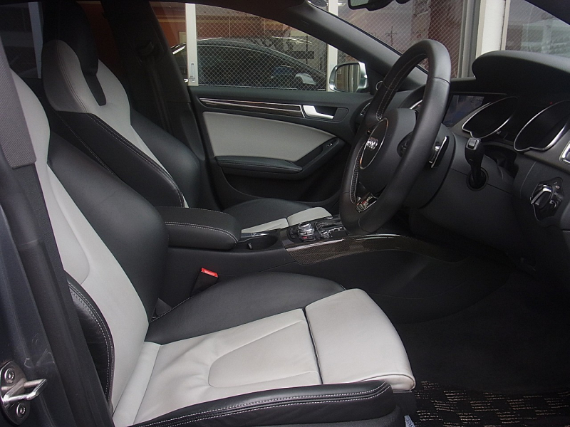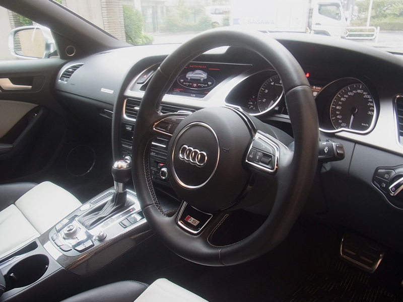 アウディ S5 スポーツバック 4WD Bang&Olufsenサウンド ACC 純正ナビTV Bモニター 19AW カーボンインテリアトリム 黒×白レザー シートヒーター ディーラー整備記録簿