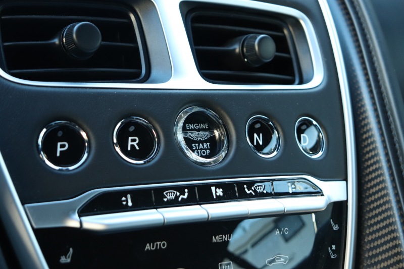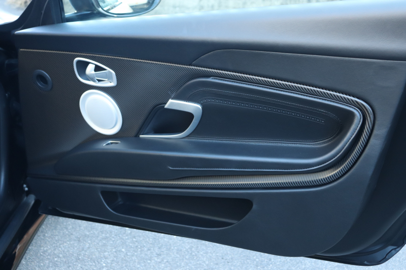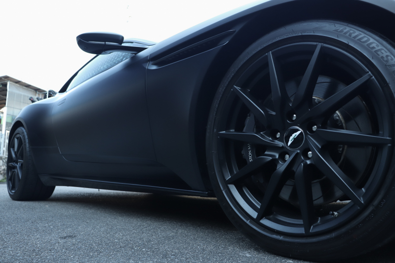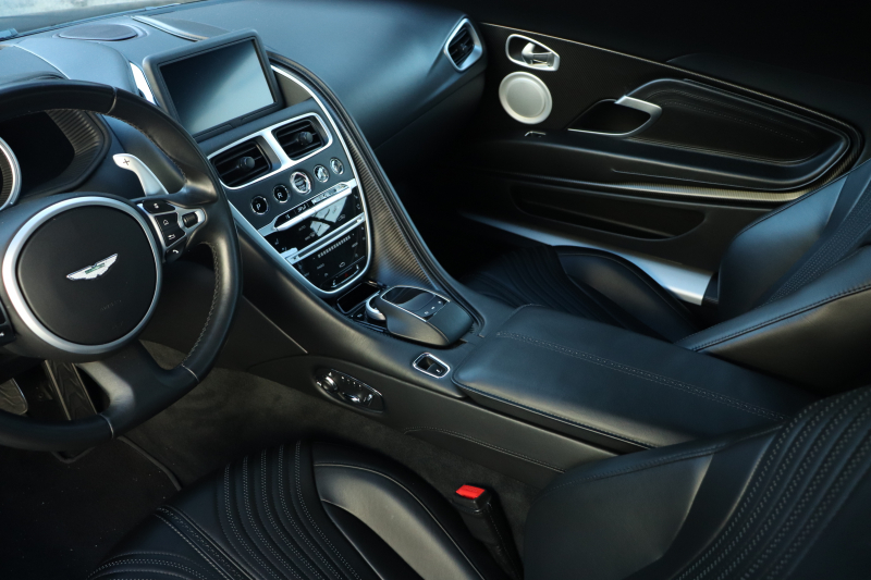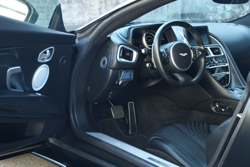 20インチ・10スポークのブラックホイール(つや消し)や、Aston Martinの機械加工カーボンファイバーウィング&スクリプトバッジが、静かな中にも確かな特別感を添えています。