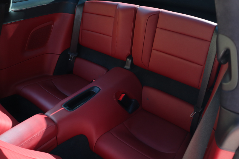 ツートンレザー(ブラック × レッド)とカラーインストルメントパネル(レッド)が揃うこの仕様は、オーダー時のこだわりが随所に感じられます。シートの状態は良好で、ステアリングやシフト周りも使用感は少なく、走行距離以上にコンディションが良い印象です。アルカンターラルーフライニングの毛並みも綺麗に保たれています。
