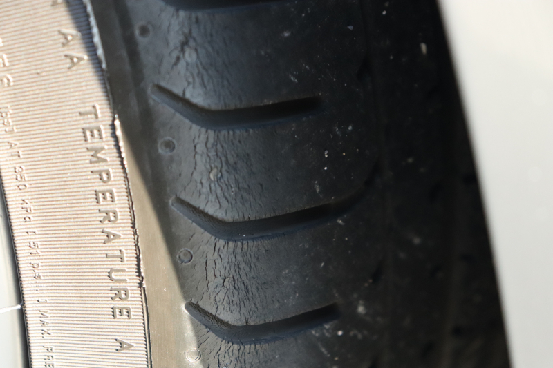 タイヤは23年式ですが、前後4.2mm程度と少し消耗が見られます。ご納車の際にタイヤ交換パックをご利用いただければ、工賃無料・タイヤ代のみで交換対応が可能です。新しい状態でお乗り出しいただけます。